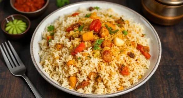 ये वेज बिरयानी न सिर्फ स्वाद में शाही है, बल्कि रंग-बिरंगी सब्जियों से आंखों को भी सुकून देती है। हर चम्मच में मसालों का तालमेल और चावल की नरमी आपको हैदराबादी महलों की याद दिलाएगी। इसे बनाएं और अपने ब्लॉग पर डालें – आपके पाठक इसे बार-बार बनाना चाहेंगे!